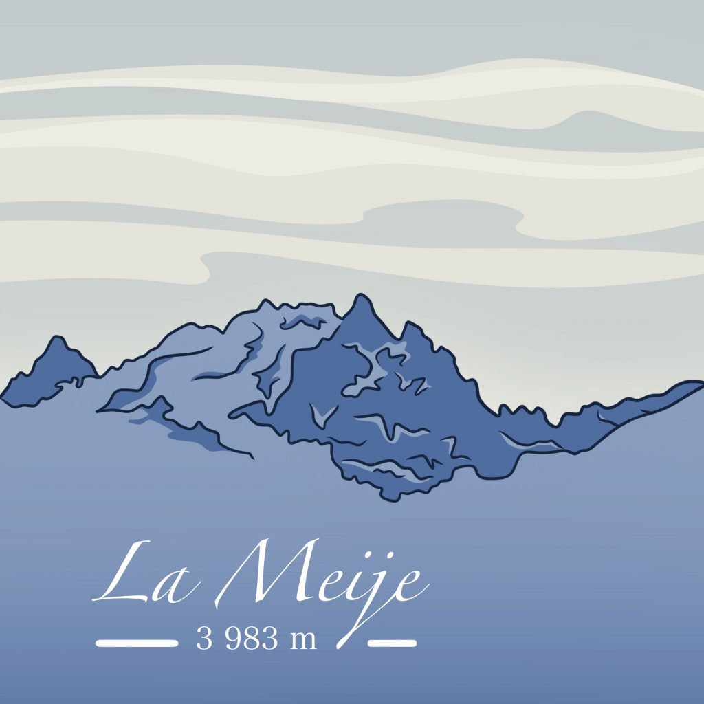 Culminant à 3983m, elle doit son nom au soleil qui passe au-dessus d’elle à midi (les habitants de La Grave la désignaient « l’oeille de la meidjour »).